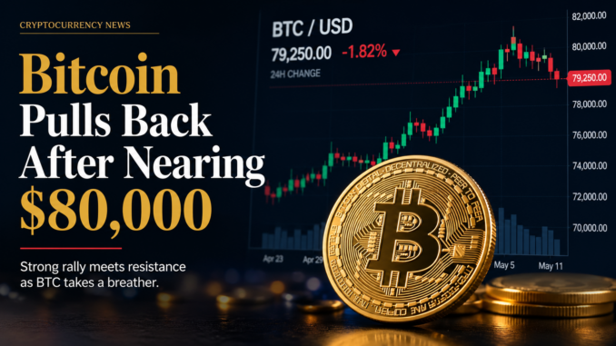 Bitcoin’s latest pullback after nearing $80,000 shows that the crypto market is still strong but cautious. Institutional demand through ETFs remains supportive, but profit-taking, derivatives pressure, and broader market uncertainty are slowing the rally.